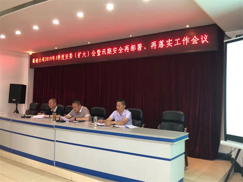 2019年7月23日,蜀通公司黨委副書(shū)記、總經(jīng)理、安委會(huì)主任余輝在公司機(jī)關(guān)會(huì)議室主持召開(kāi)了2019年三季度安委(擴(kuò)大)會(huì)暨汛期安全工作再部署、再落實(shí)工作會(huì)議。公司安委會(huì)成員及各基層安全二、三責(zé)任人共計(jì)40人參加此次會(huì)議。