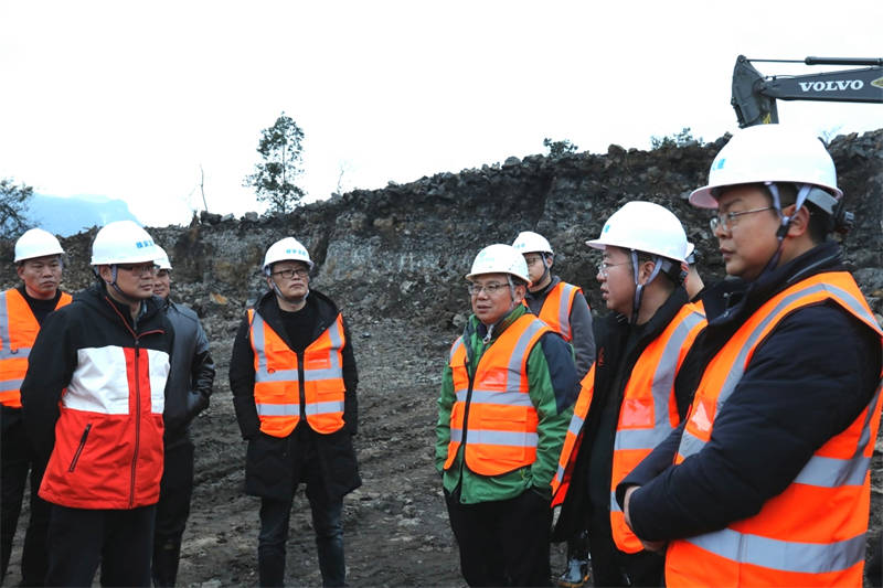 隨后,檢查組乘車前往天全魚泉鄉(xiāng)丹石礦山首采平臺(tái)。丹石公司負(fù)責(zé)人匯報(bào),礦山存儲(chǔ)量可供開采十余年,目前已經(jīng)初步解決棄土矛盾,基本可以實(shí)現(xiàn)量產(chǎn)。聽完現(xiàn)場(chǎng)匯報(bào),大家切實(shí)感受到礦山開采工作的艱辛,又為集團(tuán)豐富的“家底”而信心倍增。