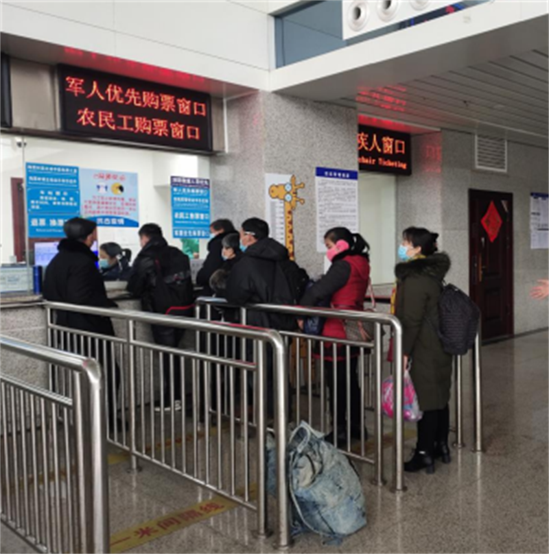 二是設立專門購票窗口。設立專門的農民工購票窗口,安排車站工作人員在售票窗口引導和幫助農民工朋友使用“微信購票”、“自助售票機購票”、“電子客票”等便捷綠色功能購票乘車。