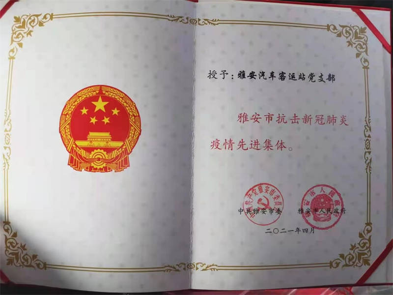 今年4月,蜀通公司雅安汽車客運站黨支部被市委、市政府評為“雅安市抗擊新冠肺炎疫情先進集體”,蜀通公司名山車站曹流滔同志被表彰為“雅安市抗擊新冠肺炎疫情先進個人”。