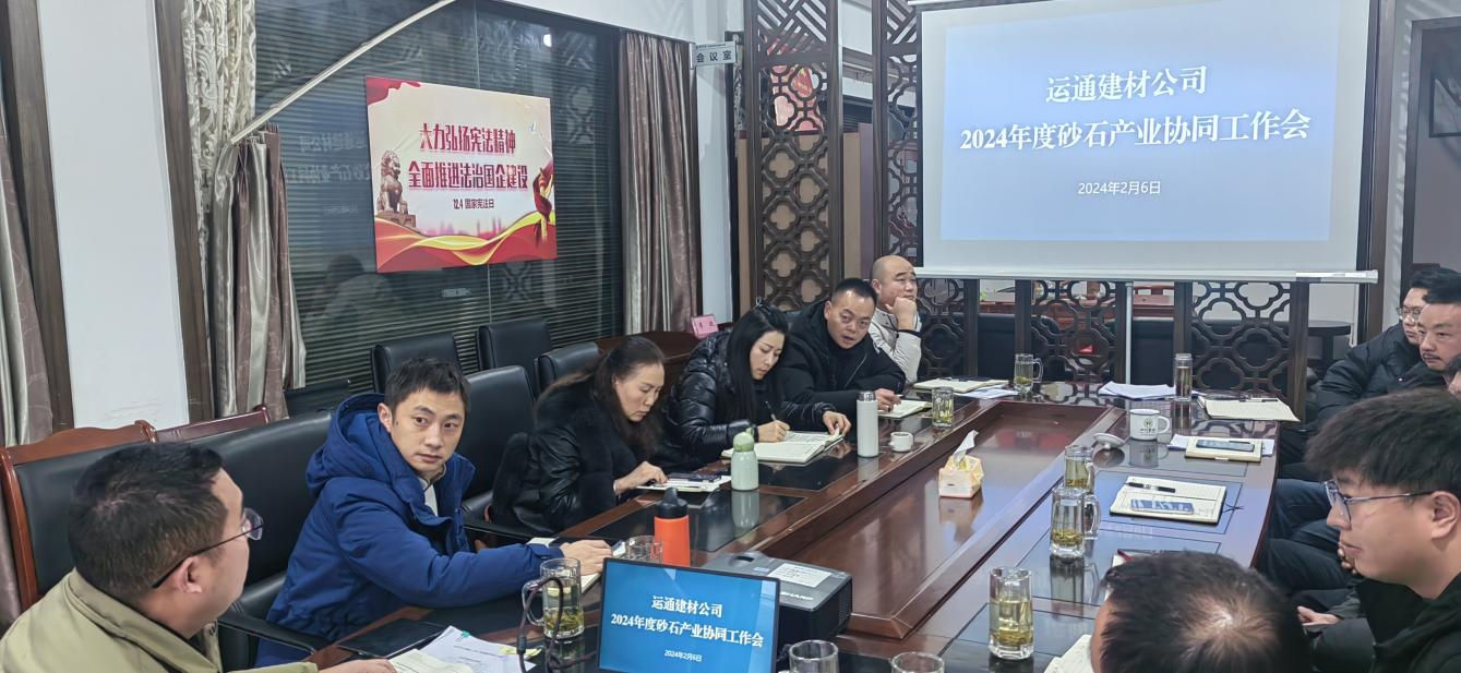 按照集團公司2024年工作部署,建材公司董事長李波組織召開2024年度砂石產(chǎn)業(yè)協(xié)同工作會,集團目標(biāo)管理部負責(zé)人以及建材、丹石、云石、興寶公司班子成員、銷售部門負責(zé)人參加會議。會議就2024年度重點工作任務(wù)、市場拓展方向、產(chǎn)業(yè)協(xié)同等方面進行深入研討。