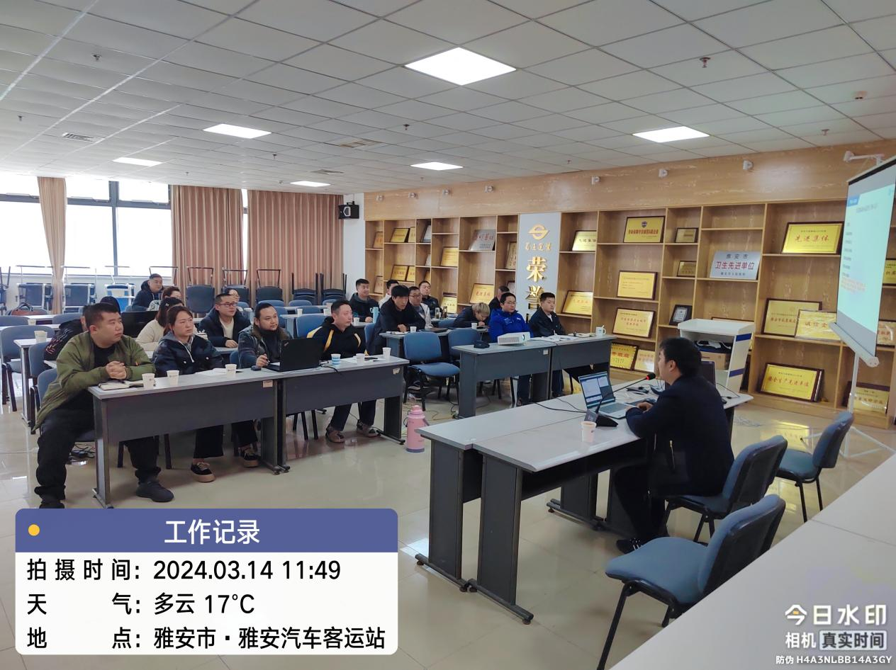 為進一步規(guī)范營運車輛動態(tài)監(jiān)控管理,提高動態(tài)監(jiān)控人員安全責(zé)任意識和綜合監(jiān)管能力,結(jié)合雅安市安全生產(chǎn)治本攻堅三年行動要求,2024年3月14日,蜀通公司特邀成都網(wǎng)闊公司技術(shù)工程師,對我司18名專職車輛動態(tài)監(jiān)控管理人員進行業(yè)務(wù)培訓(xùn)。