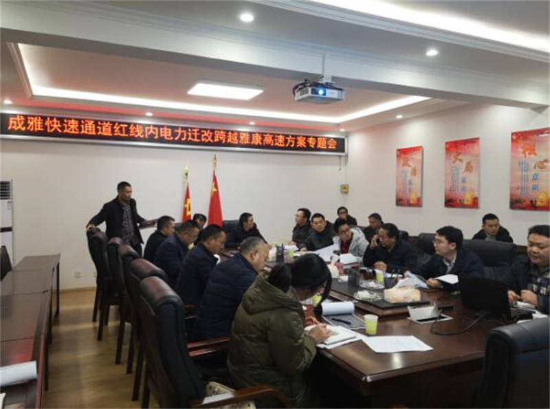 市交通運(yùn)輸局趙飛勇副局長、市交建集團(tuán)羅倫全總經(jīng)理、雅康高速公司李萬軍副總經(jīng)理,交建集團(tuán)、雅康高速公司、雅電集團(tuán)、電力設(shè)計單位、第三方咨詢單位相關(guān)人員出席會議。