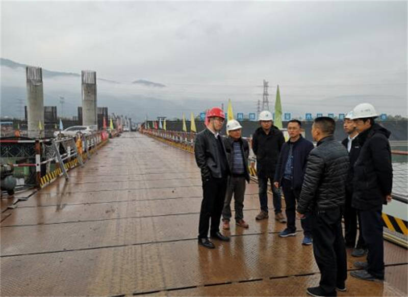 12月3日,市交通運輸局副局長趙飛勇等一行前往成雅快速通道新建項目二標段水津關(guān)特大橋施工現(xiàn)場檢查,并督導項目推進工作。