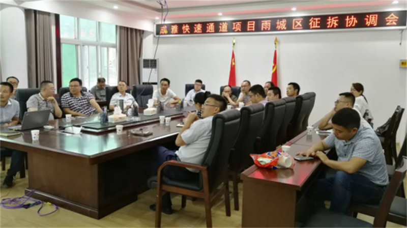 為加快推進成雅快速通道雨城區(qū)境內(nèi)征地搬遷工作,確保項目建設(shè)如期推進。6月12日下午,雨城區(qū)人民政府、市交通局、雅安交建集團及沿線鄉(xiāng)鎮(zhèn)相關(guān)負責人共同研究成雅快速通道雨城區(qū)征地搬遷存在的問題。