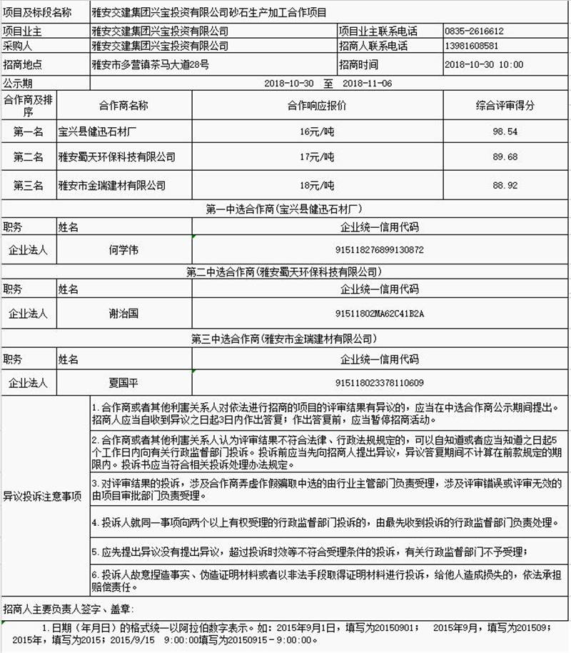 雅安交建集團(tuán)興寶投資有限公司砂石生產(chǎn)加工合作項目公示