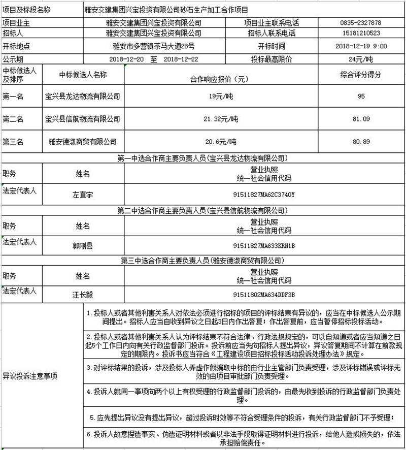 雅安交建集團(tuán)興寶投資有限公司砂石生產(chǎn)加工合作項(xiàng)目征集合作方公示