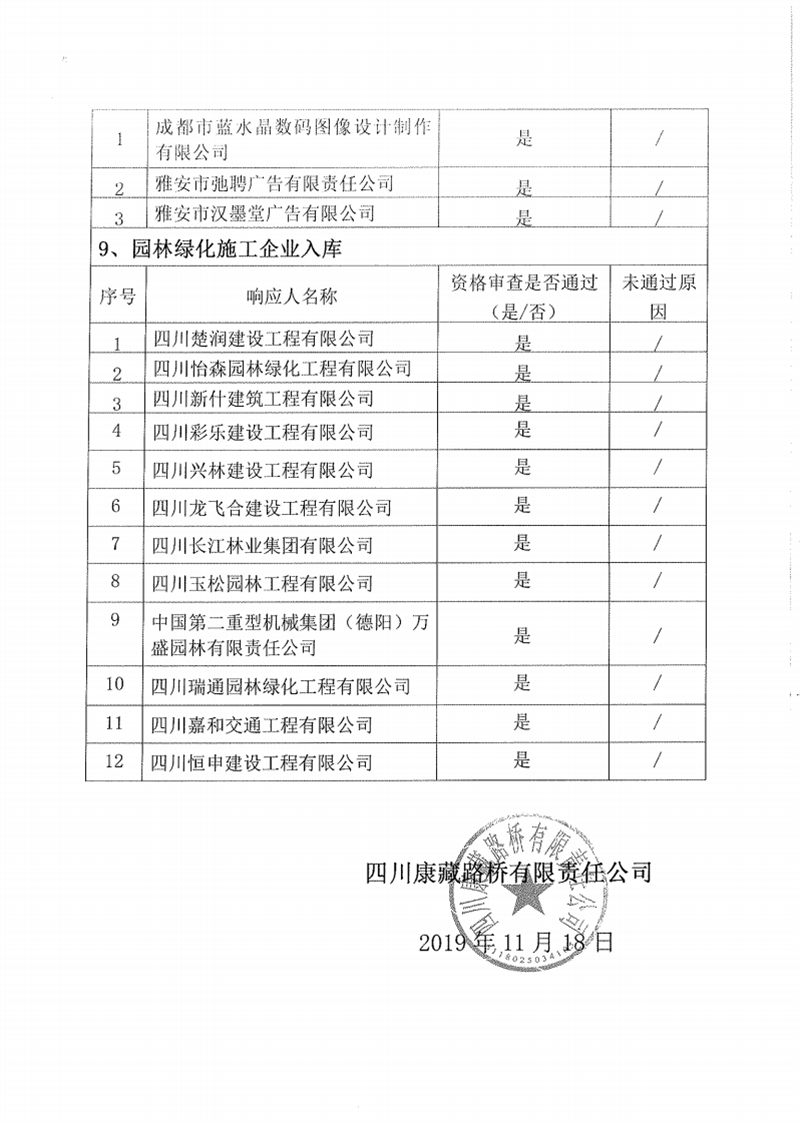 四川康藏路橋有限責(zé)任公司企業(yè)入庫(kù)比選結(jié)果公示