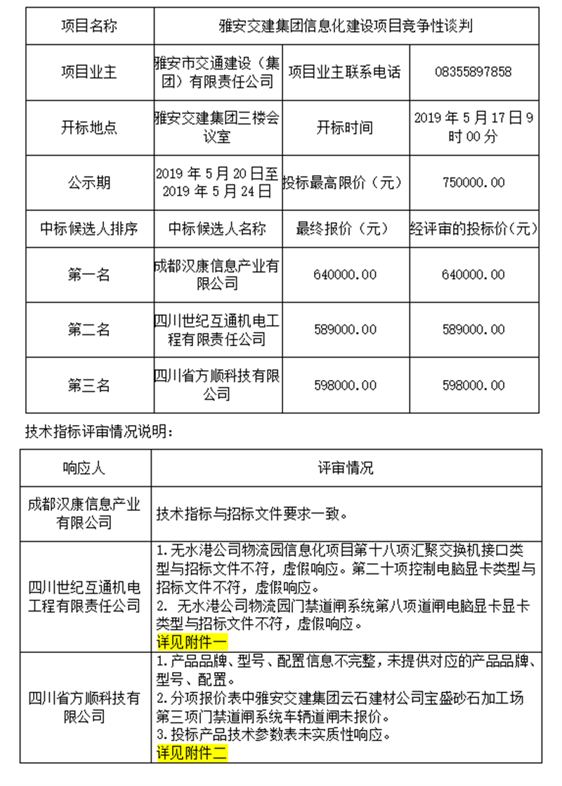 雅安交建集團(tuán)信息化建設(shè)項(xiàng)目競爭性談判評標(biāo)結(jié)果公示