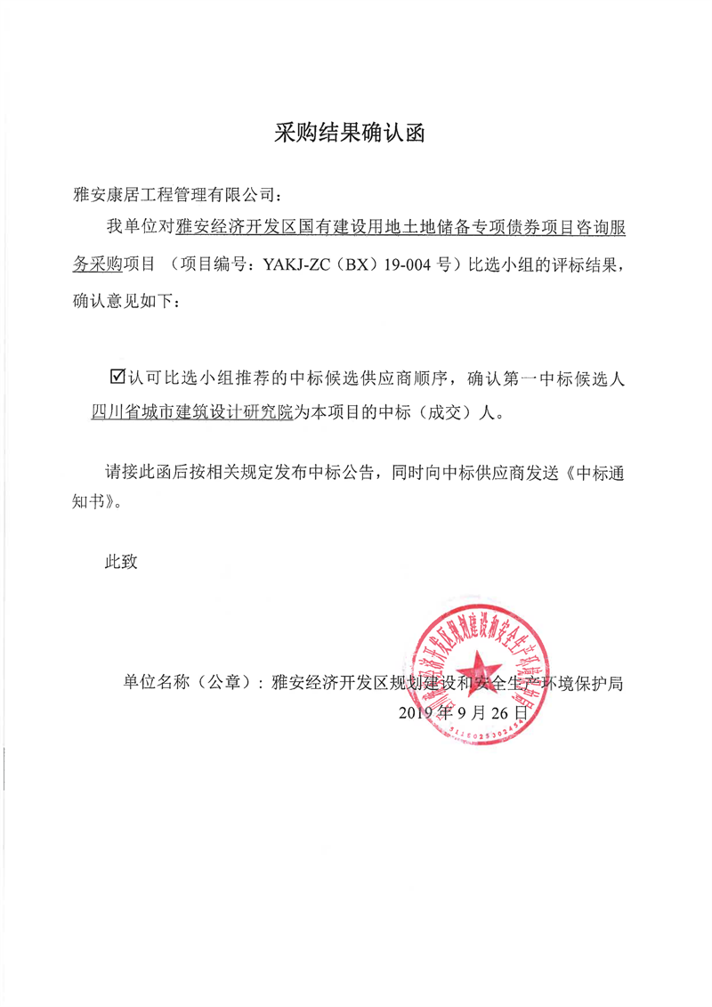 雅安經(jīng)濟(jì)開發(fā)區(qū)國(guó)有建設(shè)用地土地儲(chǔ)備專項(xiàng)債券項(xiàng)目咨詢服務(wù)采購(gòu)比選結(jié)果公示