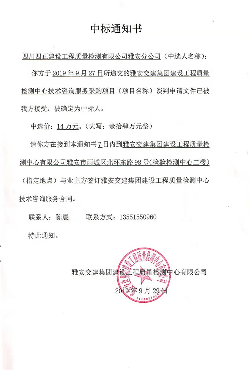 雅安交建集團建設(shè)工程質(zhì)量檢測中心技術(shù)咨詢服務(wù)采購項目中標(biāo)公示