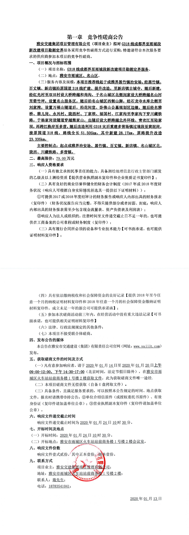 雅安交建集團(tuán)項(xiàng)目管理有限公司G318線成都界至雨城段新改建項(xiàng)目勘測定界服務(wù)競爭性磋商公告