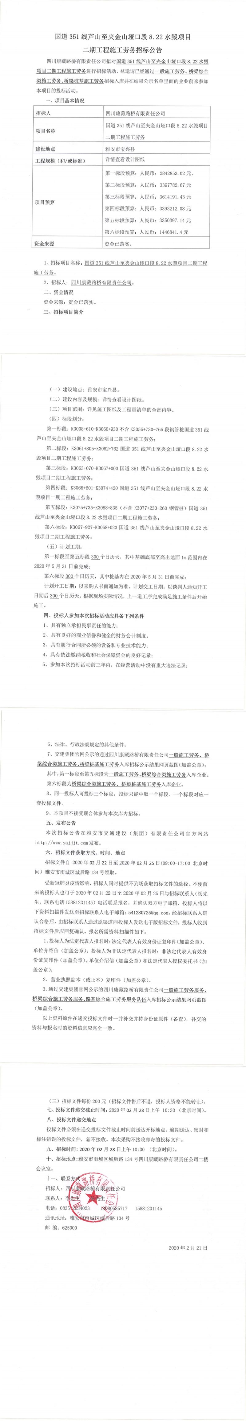 四川康藏路橋有限責任公司國道351線蘆山至夾金山埡口段8.22水毀項目二期工程施工勞務招標公告