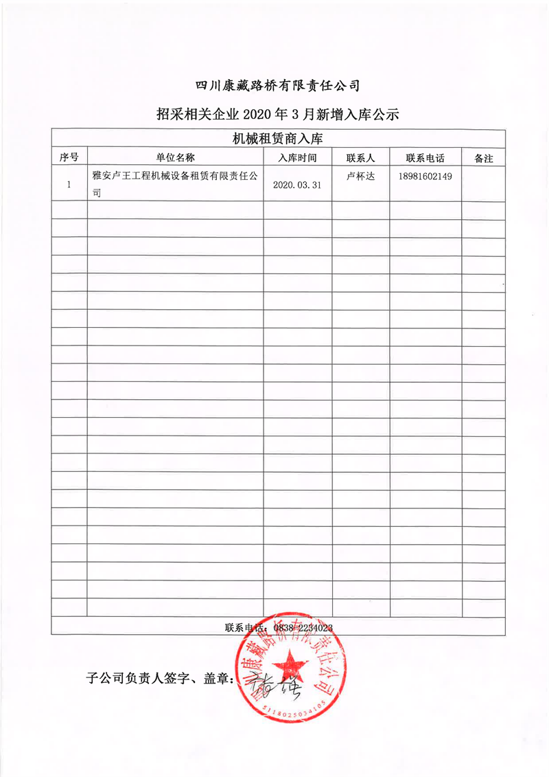 四川康藏路橋有限責(zé)任公司招采相關(guān)企業(yè)2020年3月新增入庫公示