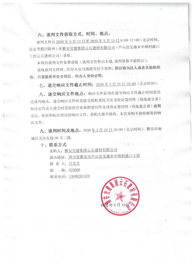 雅安交建集團(tuán)云石建材有限公司生產(chǎn)設(shè)備圓錐破采購項(xiàng)目競爭性談判(第三次)公告
