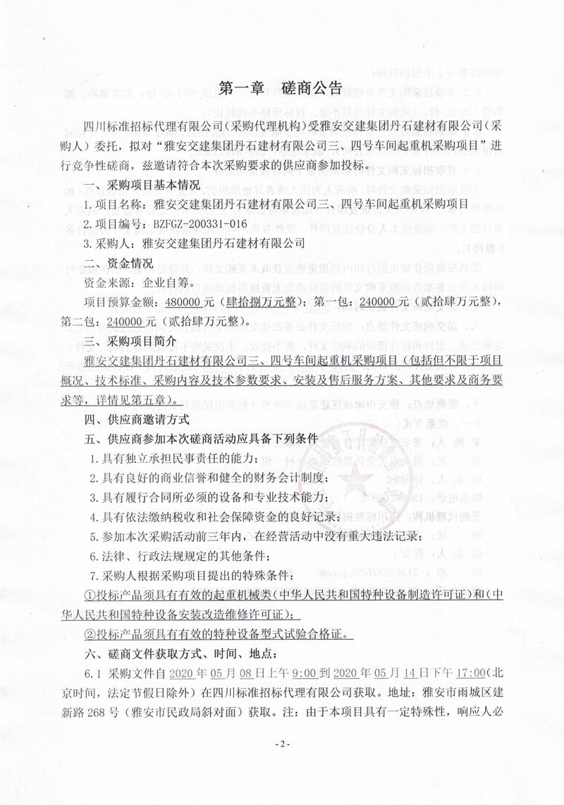 雅安交建集團(tuán)丹石建材有限公司三、四號車間起重機采購項目競爭性磋商公告