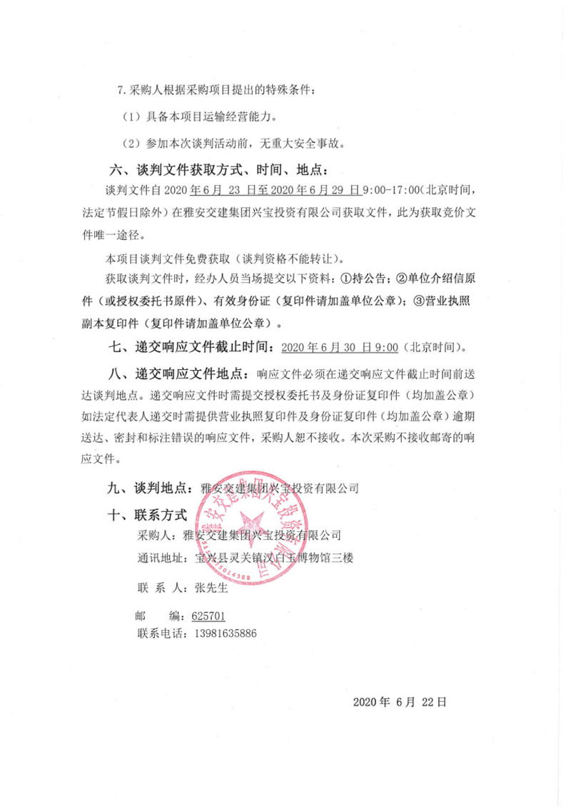 雅安交建集團興寶投資有限公司靈關鎮(zhèn)代碑寺物流園土地整理棄渣運輸采購項目二期競爭性談判公告