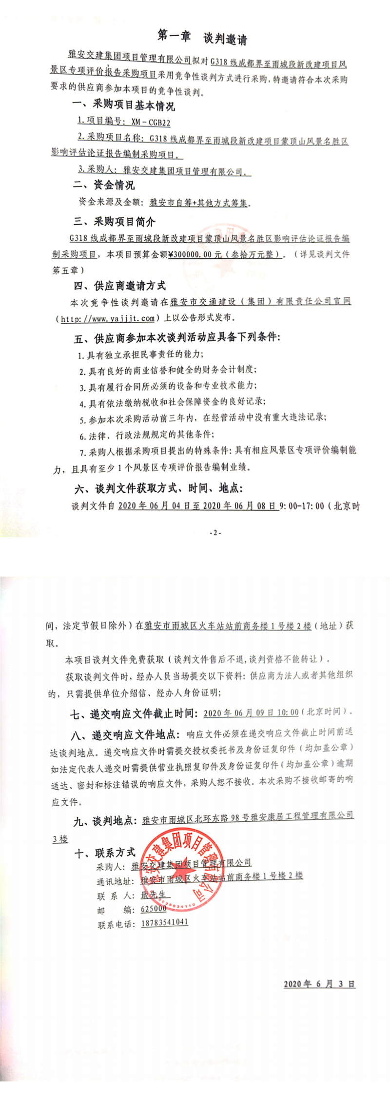 雅安交建集團(tuán)項(xiàng)目管理有限公司G318線成都界至雨城段新改建項(xiàng)目蒙頂山風(fēng)景名勝區(qū)影響評(píng)估論證報(bào)告編制采購項(xiàng)目競爭性談判公告