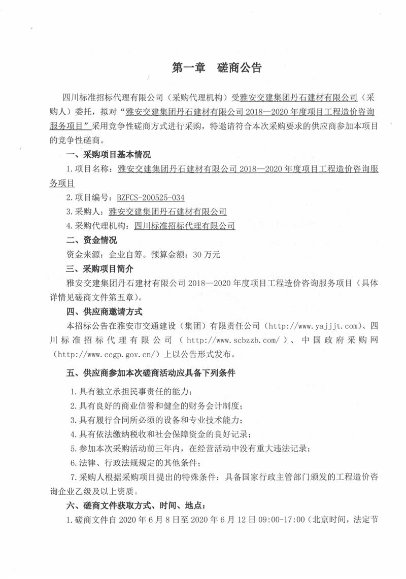 雅安交建集團(tuán)丹石建材有限公司2018—2020年度項(xiàng)目工程造價咨詢服務(wù)項(xiàng)目競爭性磋商公告