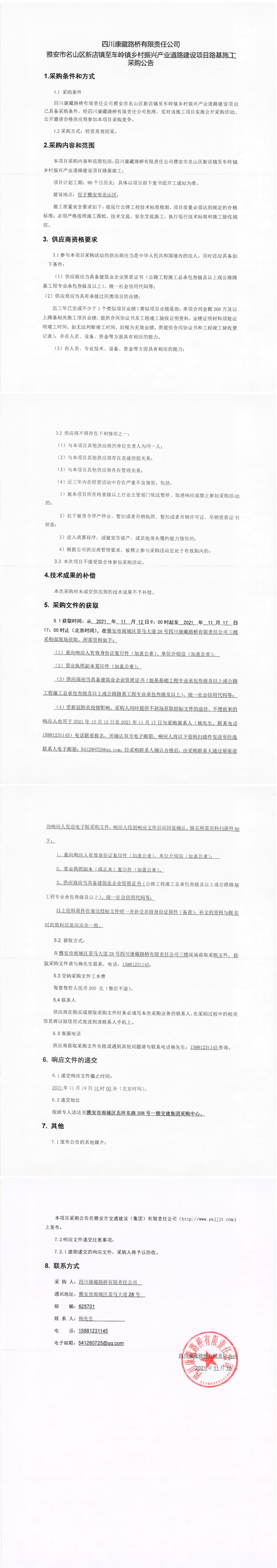 四川康藏路橋有限責(zé)任公司雅安市名山區(qū)新店鎮(zhèn)至車嶺鎮(zhèn)鄉(xiāng)村振興產(chǎn)業(yè)道路建設(shè)項目路基施工采購公告