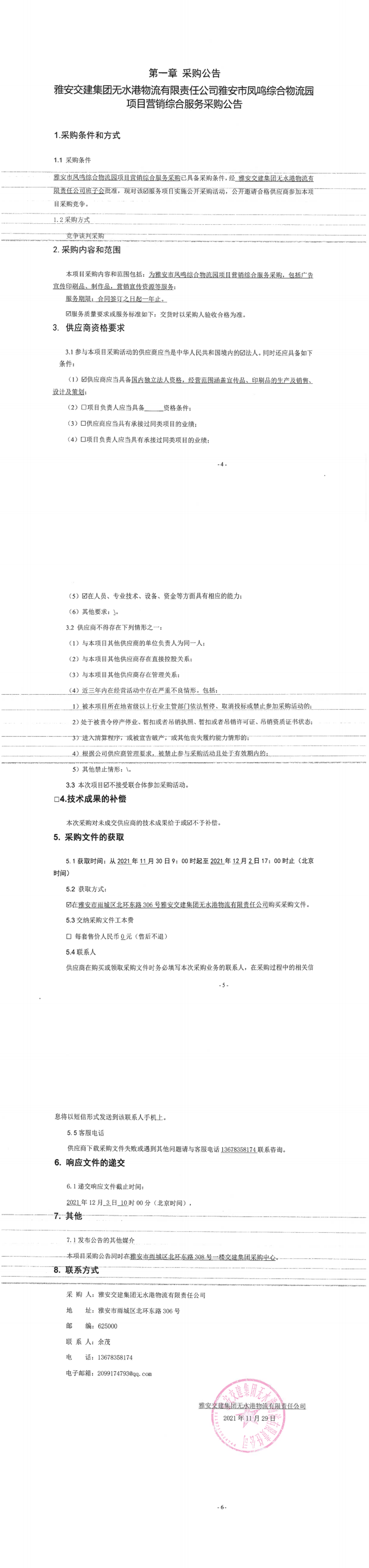 雅安交建集團(tuán)無水港物流有限責(zé)任公司雅安市鳳鳴綜合物流園項(xiàng)目營(yíng)銷綜合服務(wù)采購公告