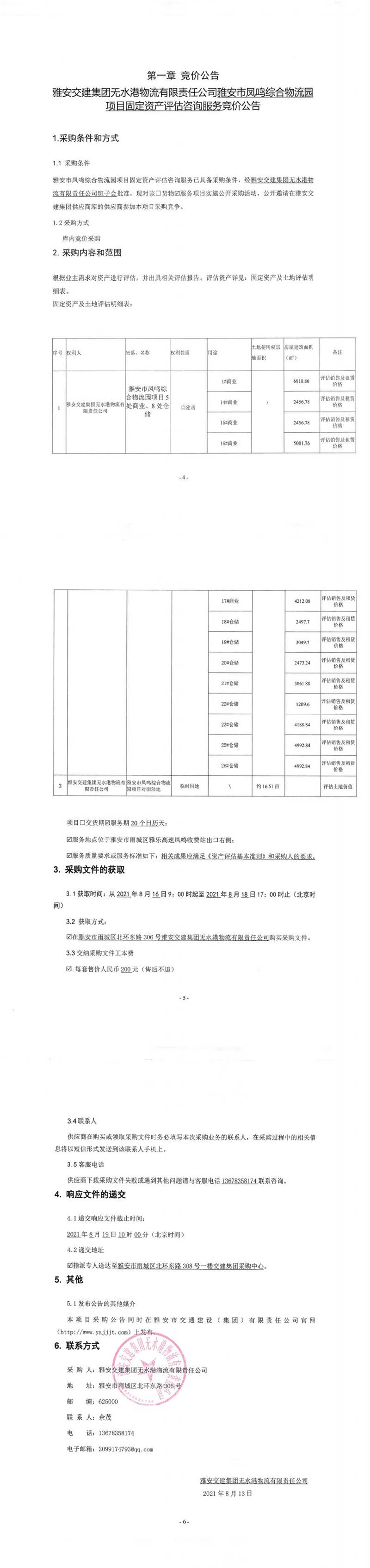雅安交建集團(tuán)無水港物流有限責(zé)任公司雅安市鳳鳴綜合物流園項(xiàng)目固定資產(chǎn)評估咨詢服務(wù)競價(jià)公告