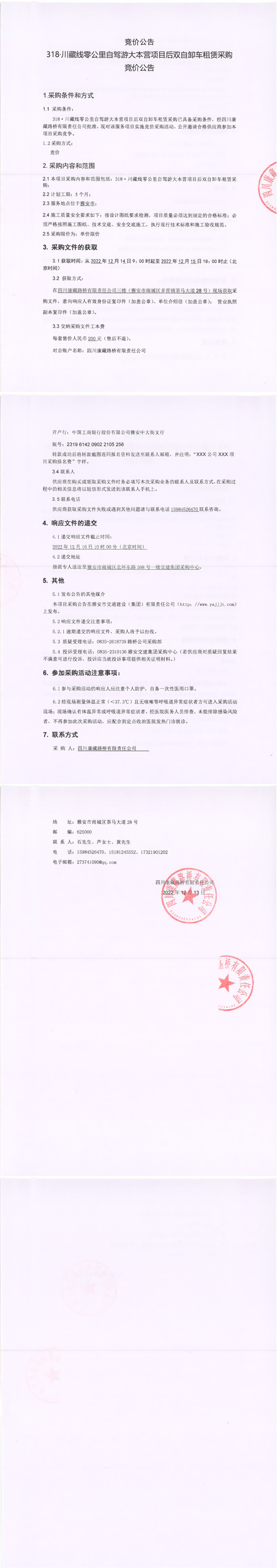 四川康藏路橋有限責(zé)任公司318.川藏線零公里自駕游大本營(yíng)項(xiàng)目后雙自卸車(chē)租賃采購(gòu)競(jìng)價(jià)公告