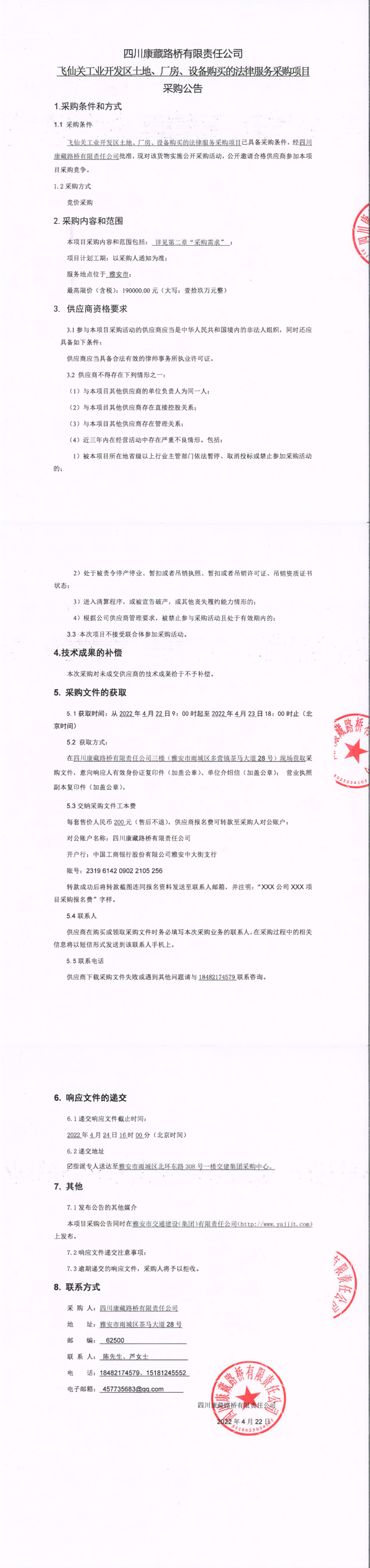 四川康藏路橋有限責(zé)任公司飛仙關(guān)工業(yè)開(kāi)發(fā)區(qū)土地、廠房、設(shè)備購(gòu)買的法律服務(wù)采購(gòu)項(xiàng)目采購(gòu)公告