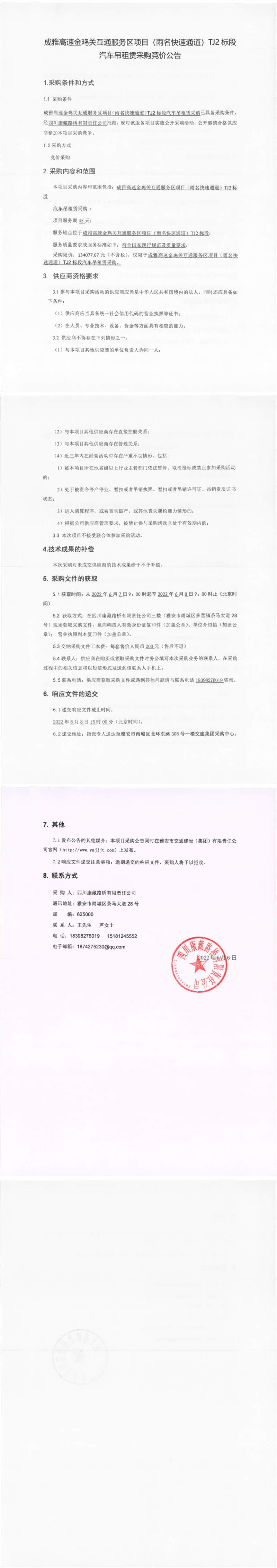 四川康藏路橋有限責(zé)任公司成雅高速金雞關(guān)互通服務(wù)區(qū)項(xiàng)目(雨名快速通道)TJ2標(biāo)段汽車(chē)吊租賃采購(gòu)競(jìng)價(jià)公告