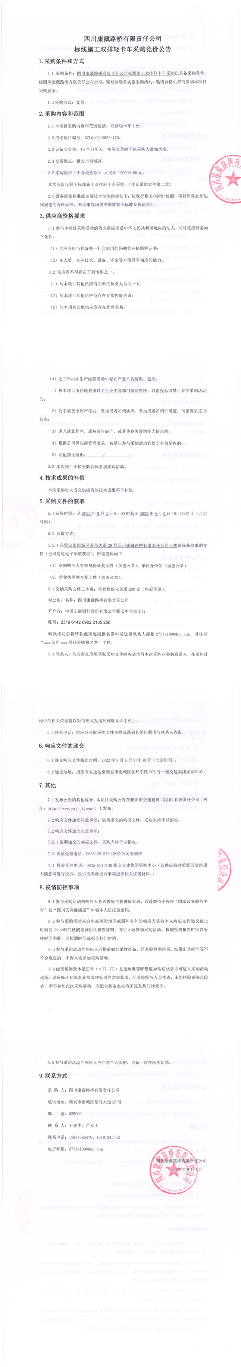 四川康藏路橋有限責(zé)任公司標線施工雙排輕卡車采購競價公告