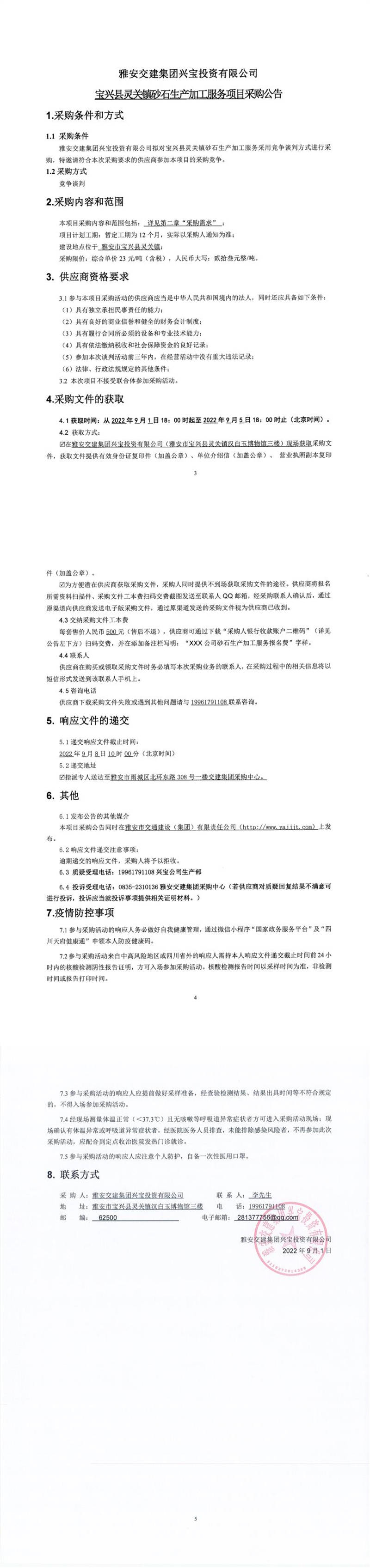 雅安交建集團(tuán)興寶投資有限公司寶興縣靈關(guān)鎮(zhèn)砂石生產(chǎn)加工服務(wù)項(xiàng)目采購公告