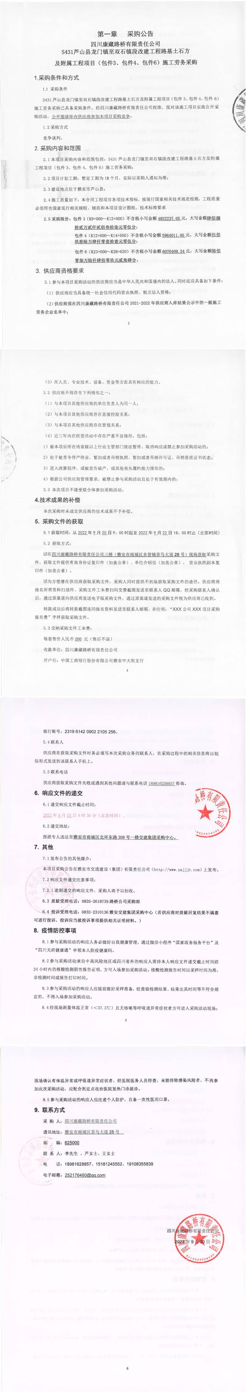 四川康藏路橋有限責(zé)任公司S431蘆山縣龍門鎮(zhèn)至雙石鎮(zhèn)段改建工程路基土石方及附屬工程項(xiàng)目(包件3、包件4、包件6)施工勞務(wù)采購公告
