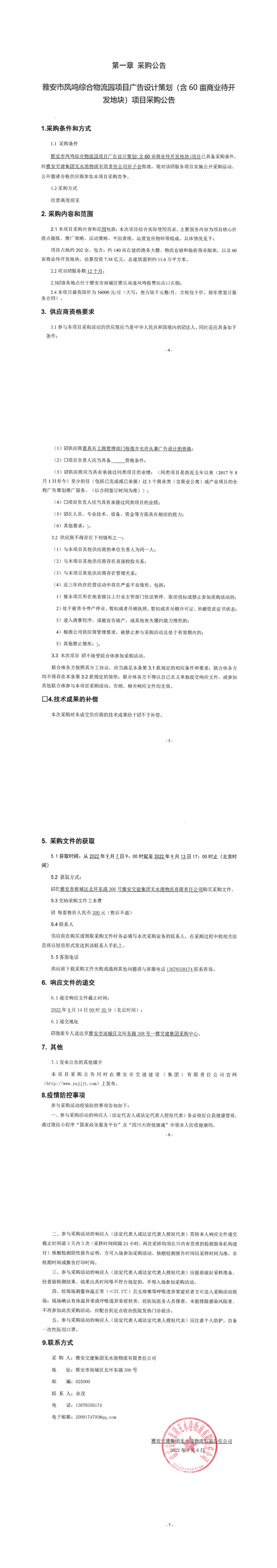 雅安交建集團(tuán)無水港物流有限責(zé)任公司雅安市鳳鳴綜合物流園項目廣告設(shè)計策劃(含60畝商業(yè)待開發(fā)地塊)項目采購公告