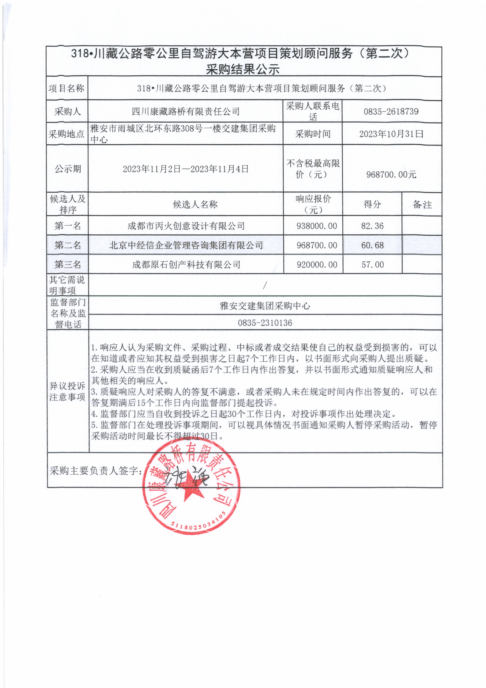 四川康藏路橋有限責任公司 318•川藏公路零公里自駕游大本營項目策劃顧問服務(第二次)采購結果公示