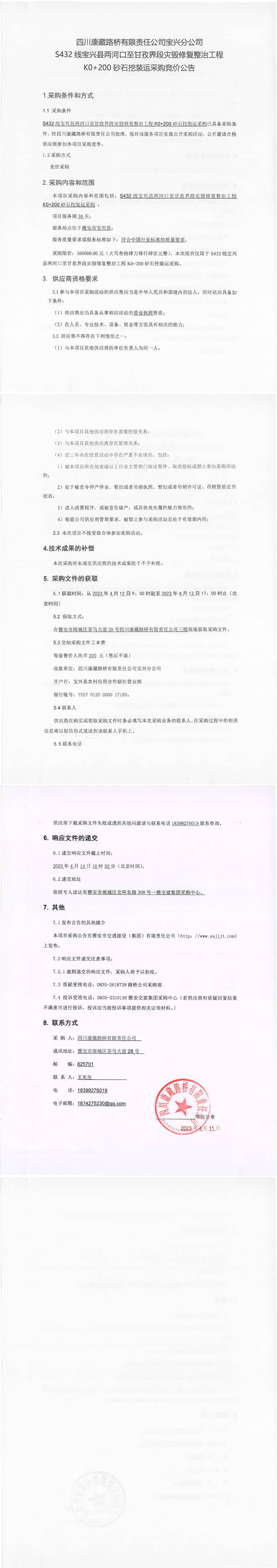 四川康藏路橋有限責(zé)任公司寶興分公司S432寶興縣兩河口至甘孜界段災(zāi)毀修復(fù)整治工程K0+200砂石挖裝運(yùn)采購競(jìng)價(jià)公告