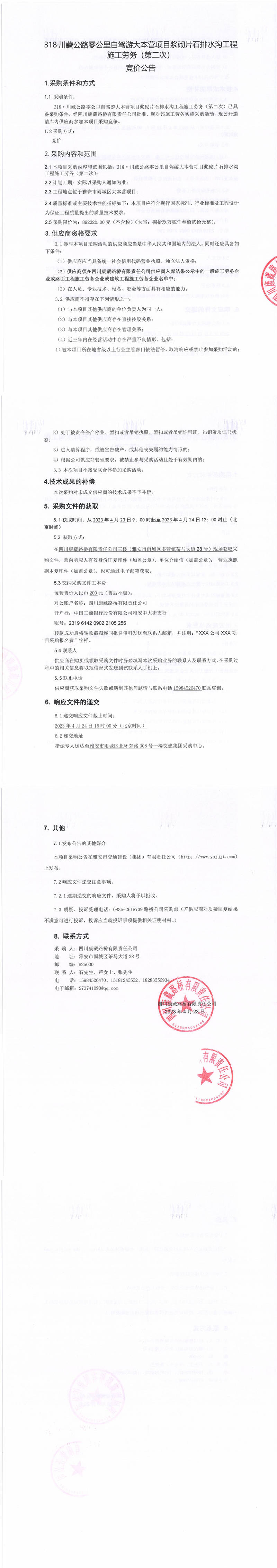 四川康藏路橋有限責(zé)任公司318·川藏公路零公里自駕游大本營項目漿砌片石排水溝工程施工勞務(wù)(第二次)采購公告