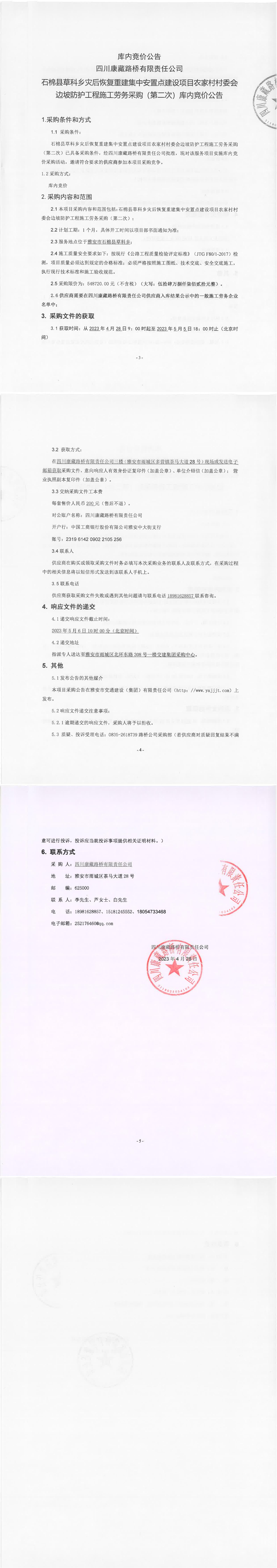四川康藏路橋有限責任公司石棉草科鄉(xiāng)災后恢復重建集中安置點建設(shè)項目農(nóng)家村村委會邊坡防護工程施工勞務(wù)采購(第二次)庫內(nèi)競價公告