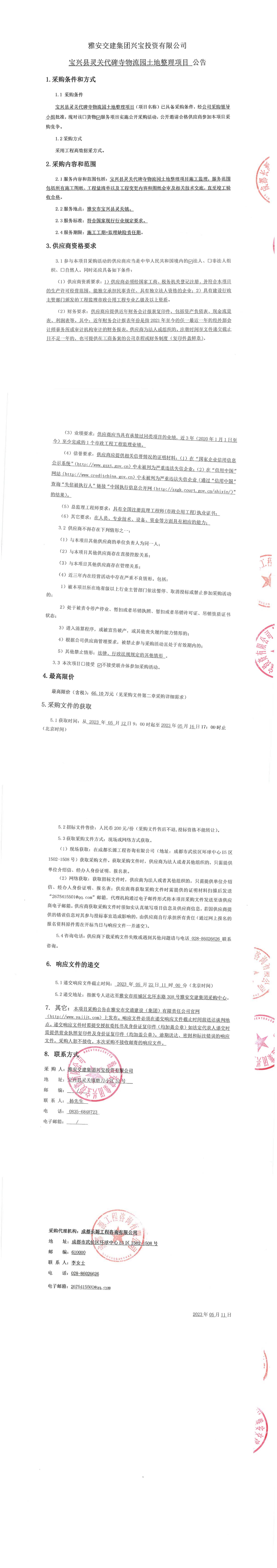 雅安交建集團(tuán)興寶投資有限公司寶興縣靈關(guān)代碑寺物流園土地整理項(xiàng)目公告