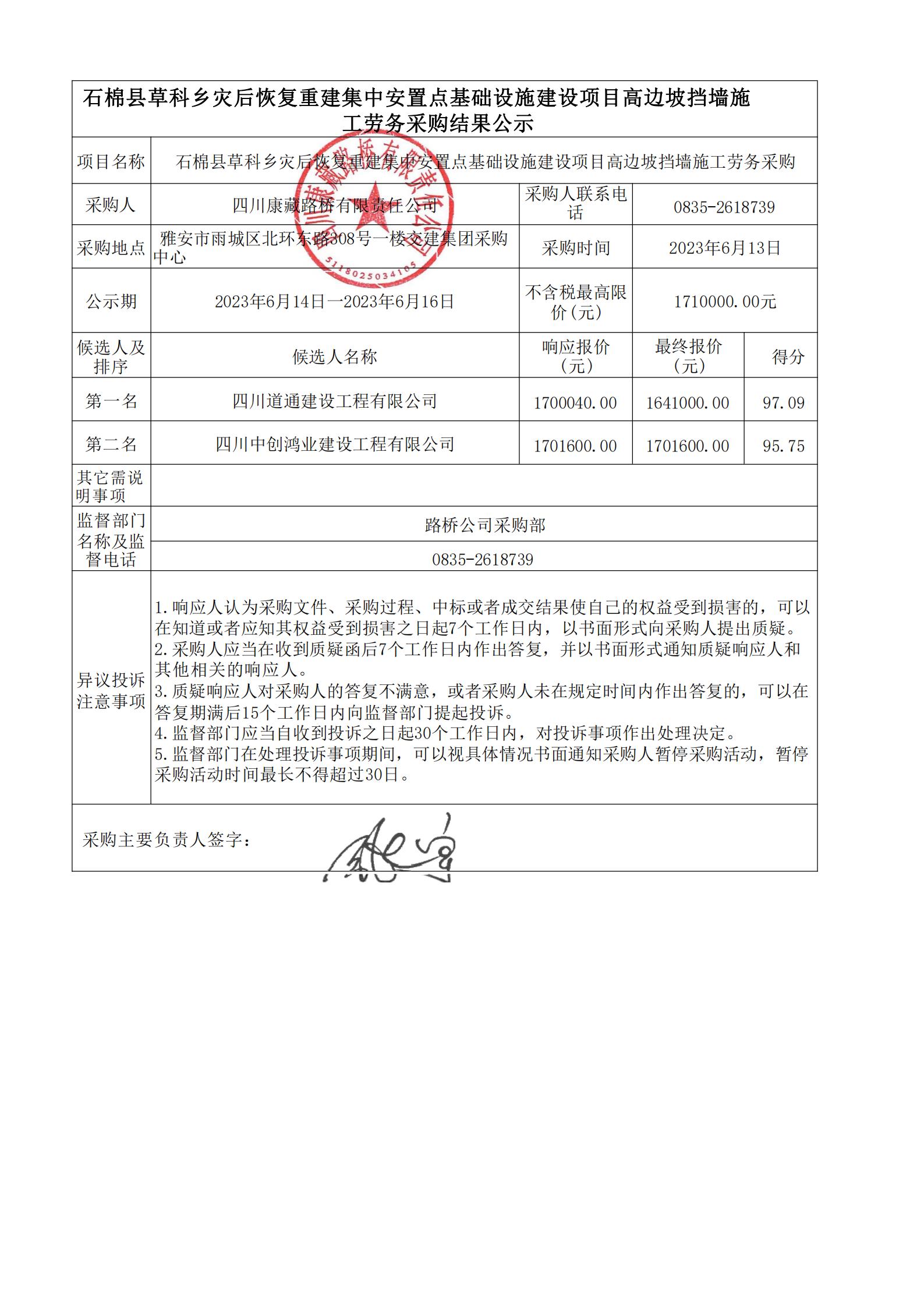 四川康藏路橋有限責(zé)任公司石棉縣草科鄉(xiāng)災(zāi)后恢復(fù)重建集中安置點(diǎn)建設(shè)項(xiàng)目農(nóng)家村村委會(huì)邊坡防護(hù)工程施工勞務(wù)采購(gòu)(第三次)結(jié)果公示