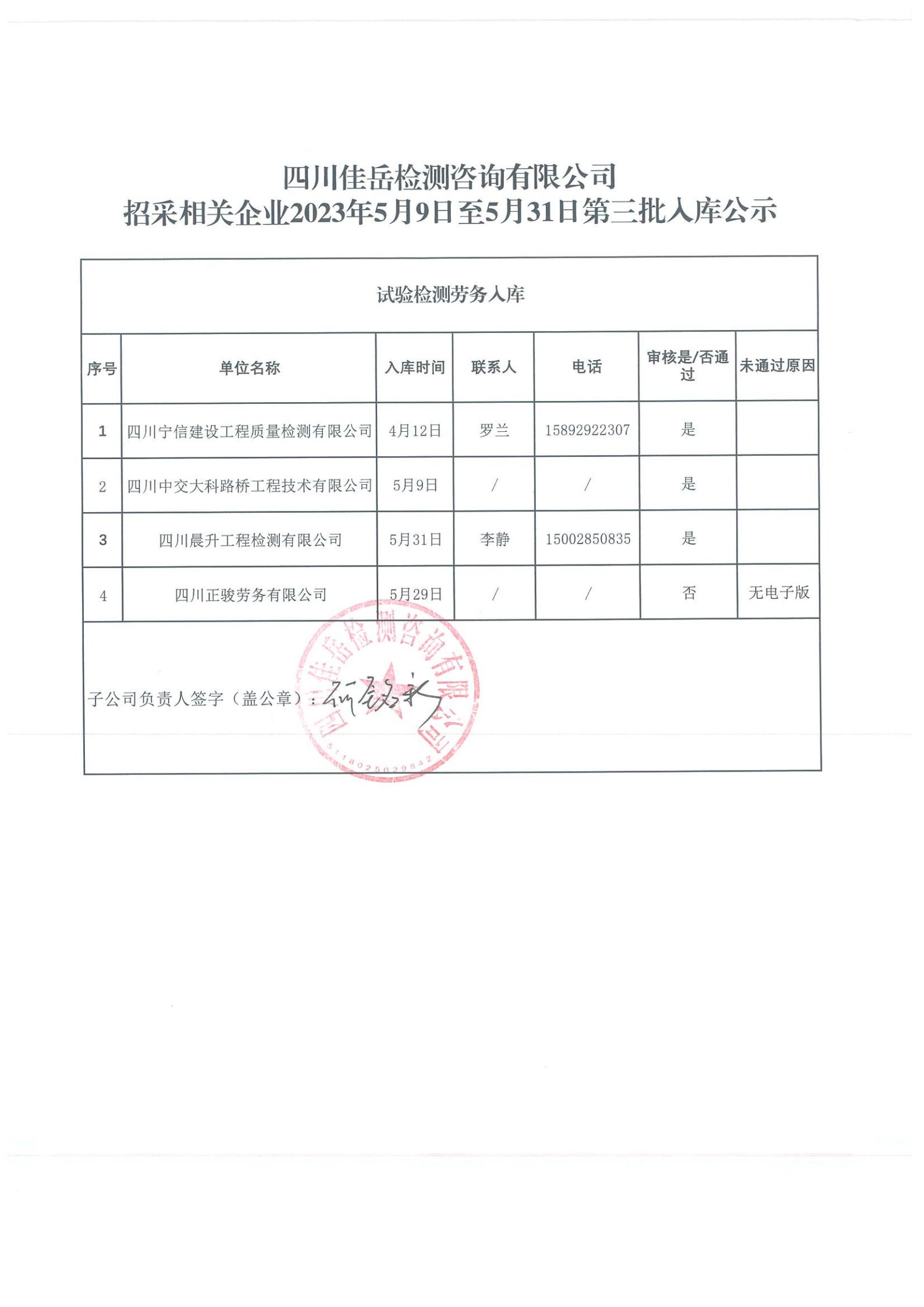 四川佳岳檢測咨詢有限公司(試驗檢測勞務(wù)供應(yīng)商庫)2023年5月9日至5月31日第三批入庫結(jié)果公示