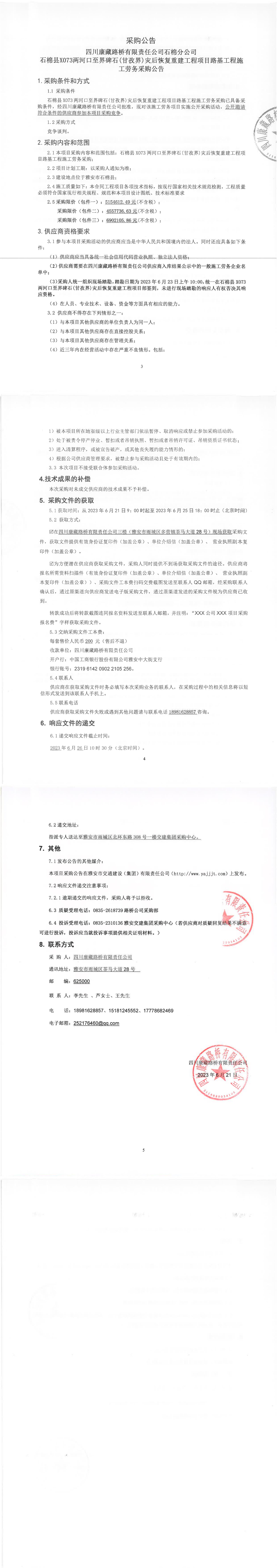 四川康藏路橋有限責(zé)任公司石棉分公司石棉縣X073兩河口至界碑石(甘孜界)災(zāi)后恢復(fù)重建工程項(xiàng)目路基工程施工勞務(wù)采購(gòu)公告
