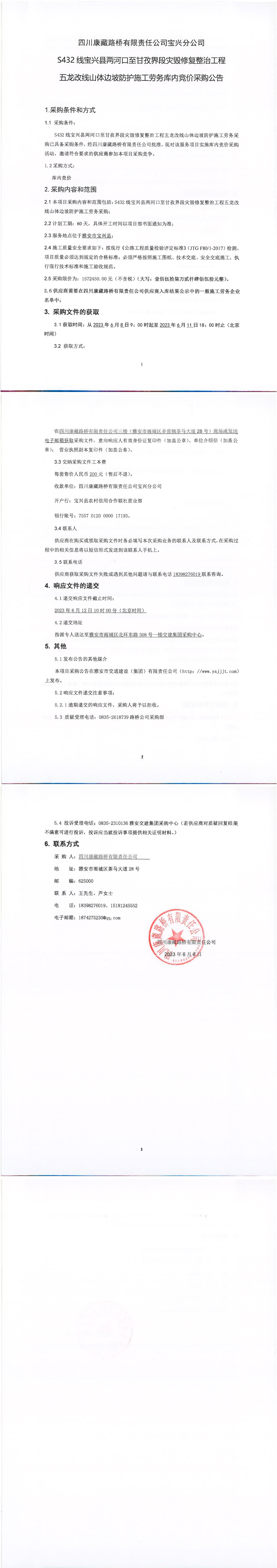 四川康藏路橋有限責(zé)任公司S432線寶興縣兩河口至甘孜界段災(zāi)毀修復(fù)整治工程五龍改線山體邊坡防護(hù)施工勞務(wù)庫內(nèi)競(jìng)價(jià)采購公告