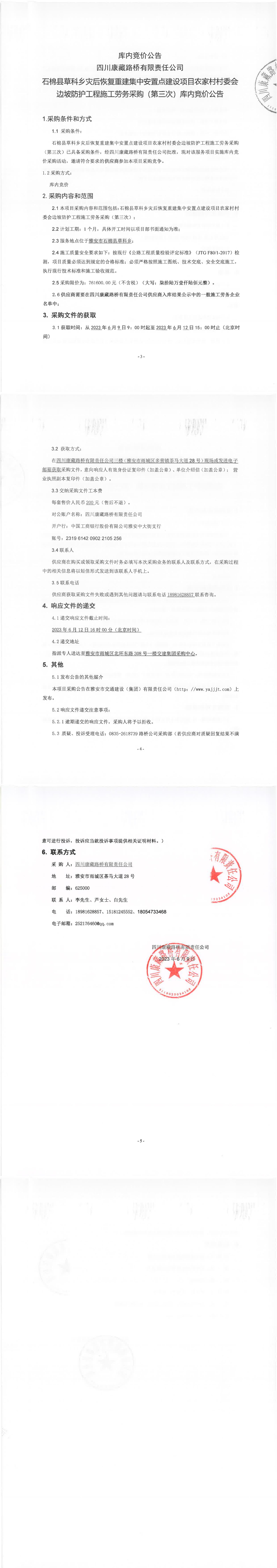 四川康藏路橋有限責(zé)任公司“9·5”瀘定地震石棉縣農(nóng)村公路災(zāi)后恢復(fù)重建工程項(xiàng)目瀝青路面工程施工勞務(wù)采購庫內(nèi)競價公告