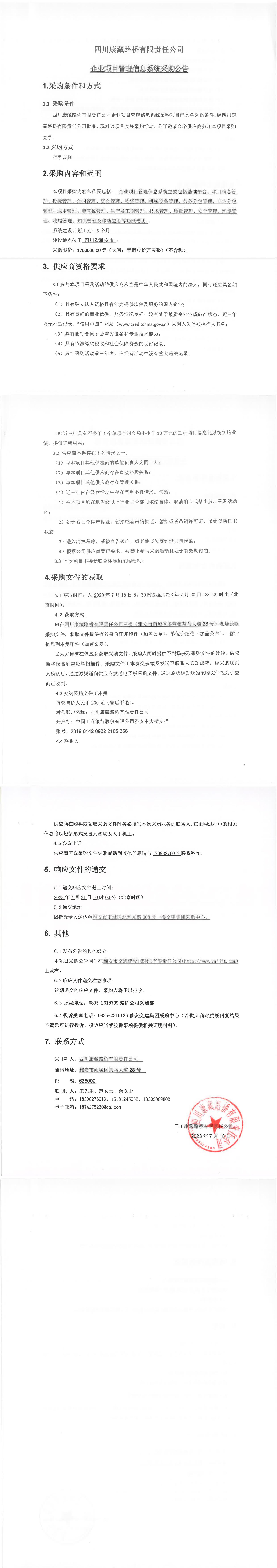 四川康藏路橋有限責任公司企業(yè)項目管理信息系統采購公告