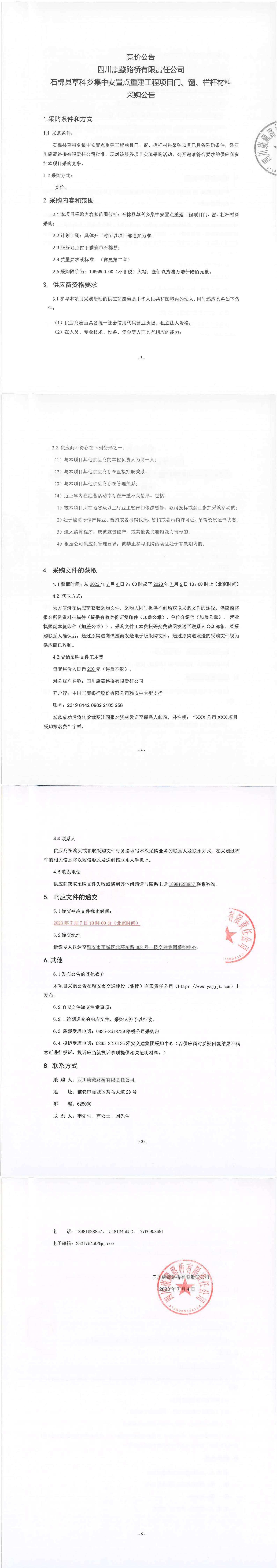 四川康藏路橋有限責(zé)任公司石棉縣草科鄉(xiāng)集中安置點(diǎn)重建工程項(xiàng)目門(mén)、窗、欄桿材料采購(gòu)公告