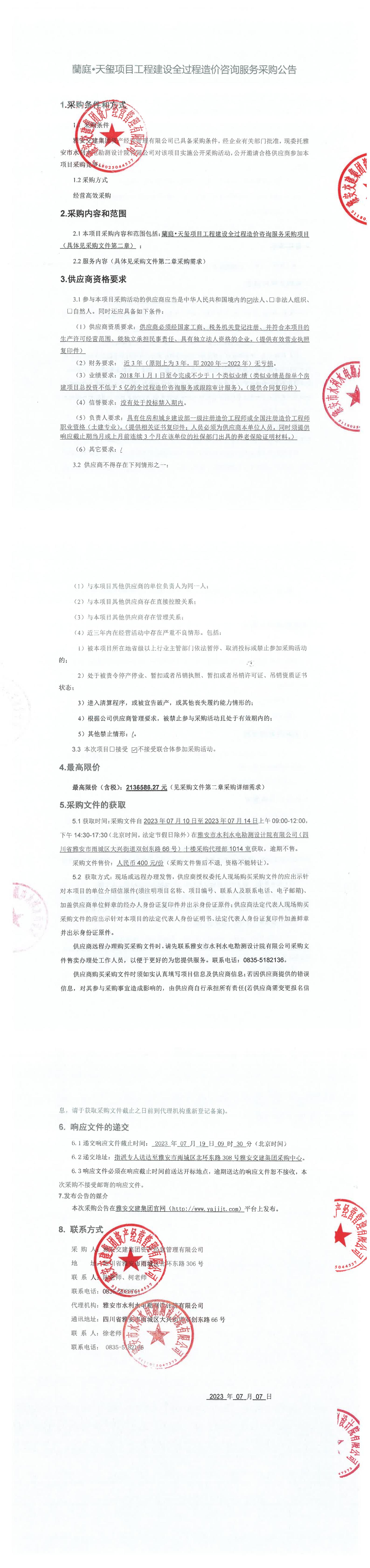 雅安交建集團(tuán)資產(chǎn)經(jīng)營(yíng)管理有限公司蘭庭•天璽項(xiàng)目工程建設(shè)全過(guò)程造價(jià)咨詢服務(wù)采購(gòu)公告