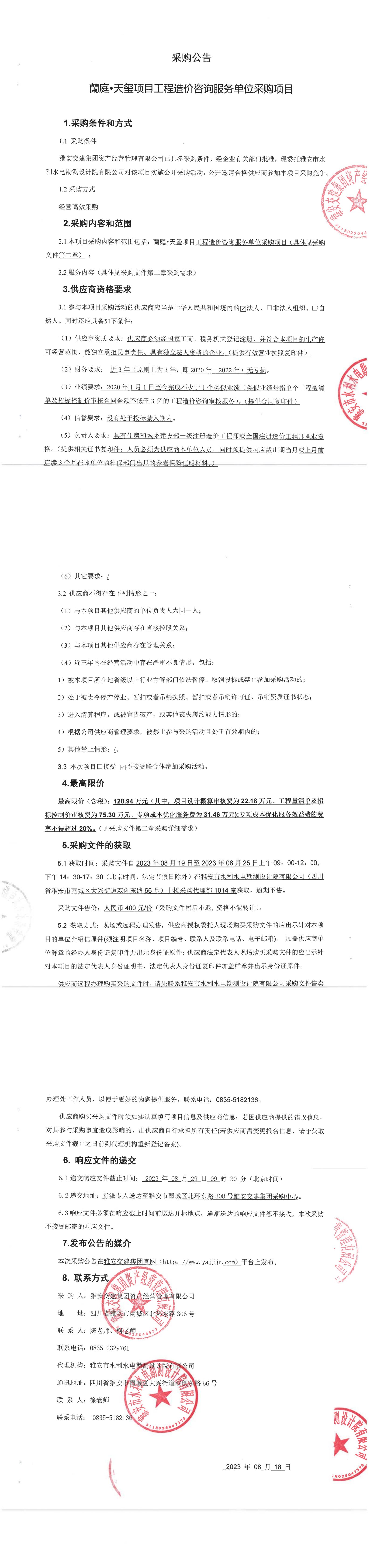 雅安交建集團(tuán)資產(chǎn)經(jīng)營管理有限公司蘭庭·天璽項(xiàng)目工程造價咨詢服務(wù)單位采購項(xiàng)目采購公告
