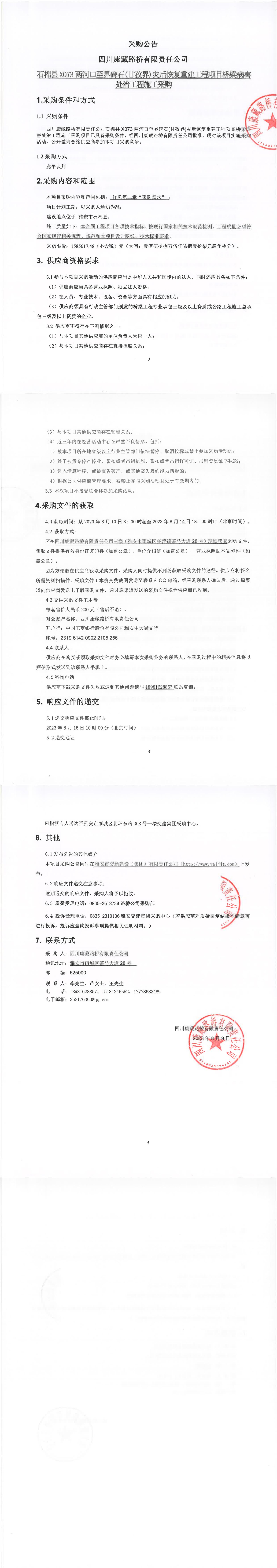 四川康藏路橋有限責(zé)任公司國道318名山區(qū)黑竹(成都界)至雨城區(qū)多營段改建工程一標(biāo)段蓋板采購競(jìng)爭(zhēng)談判結(jié)果公示