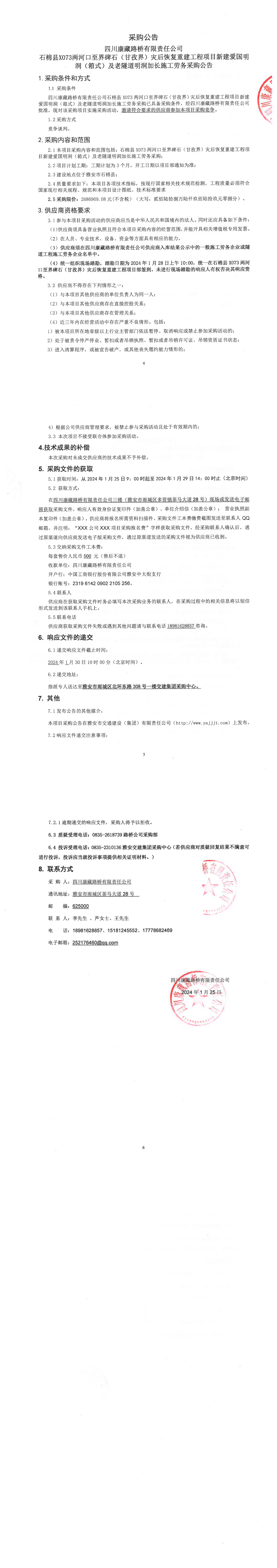 四川康藏路橋有限責(zé)任公司石棉縣X73兩河口至界碑石(甘孜界)災(zāi)后恢復(fù)重建工程項(xiàng)目新建愛(ài)國(guó)明洞(箱式)及老隧道明洞加長(zhǎng)施工勞務(wù)采購(gòu)公告