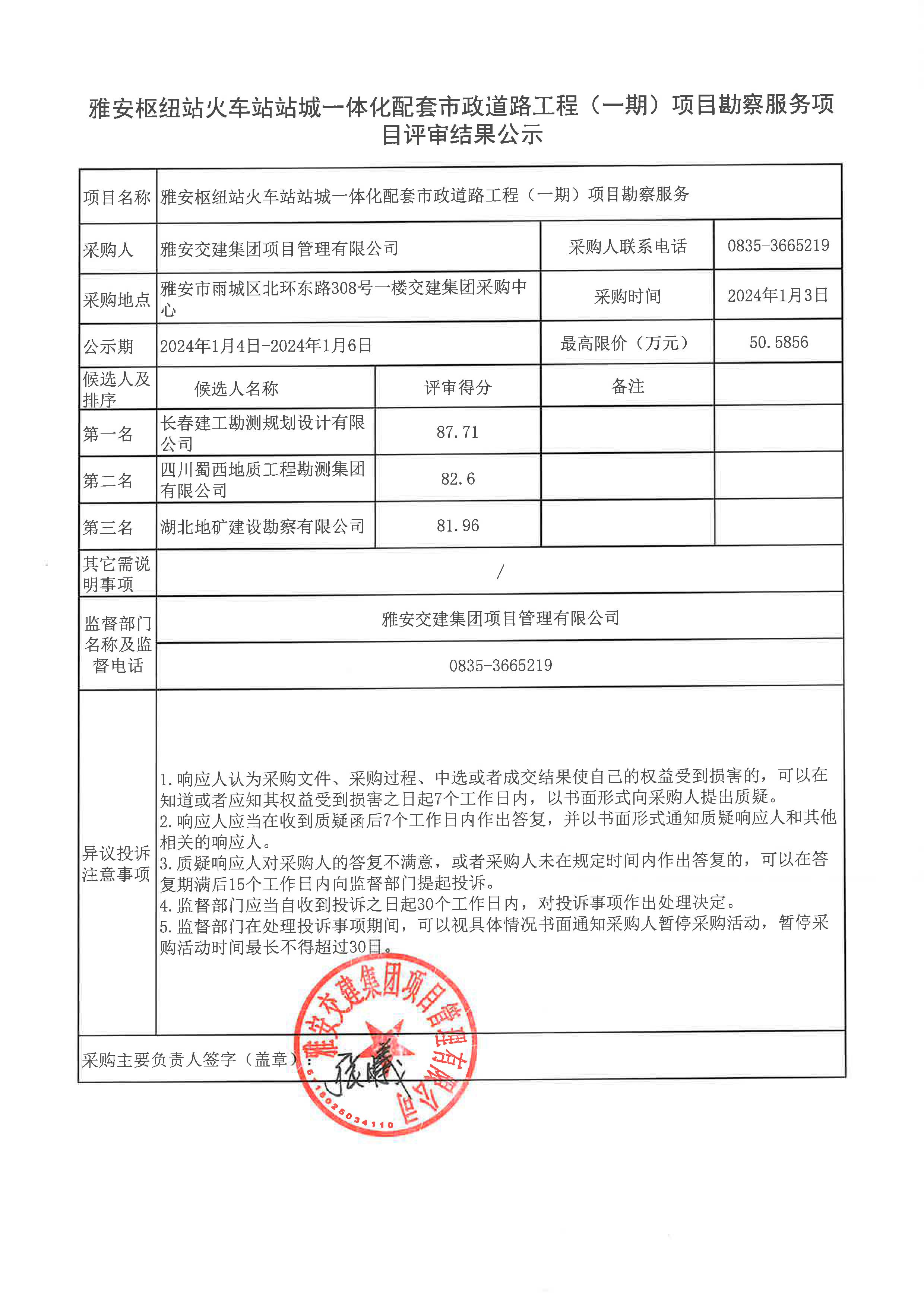 雅安交建集團(tuán)項目管理有限公司雅安樞紐站火車站站城一體化配套市政道路工程(一期) 項目勘察服務(wù)項目評審結(jié)果公示